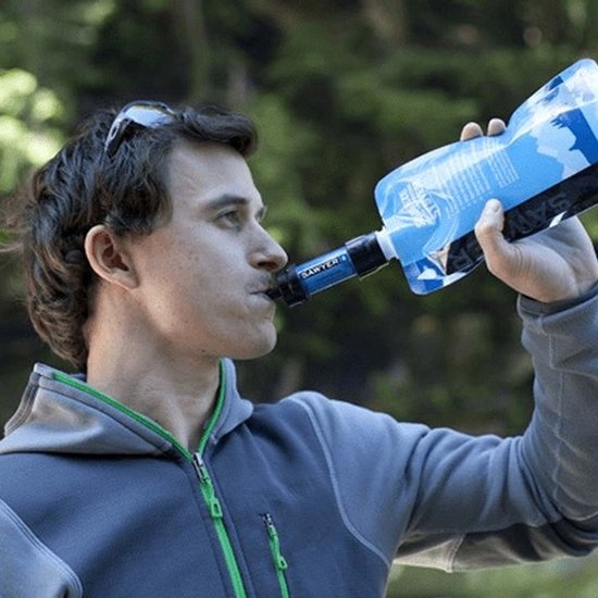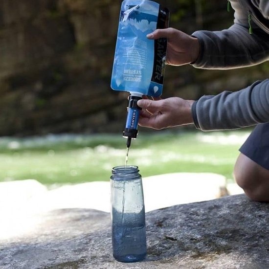 The mini Sawyer Water Filter SP128 is a water filter system that you can easily take anywhere with you. With the Sawyer mini water filter, you do not have to pump and do not have to add chemicals. You also do not have to wait long for purified water. You simply fill a PET bottle or the supplied water bag and press or suck the water through the filter with the supplied straw.