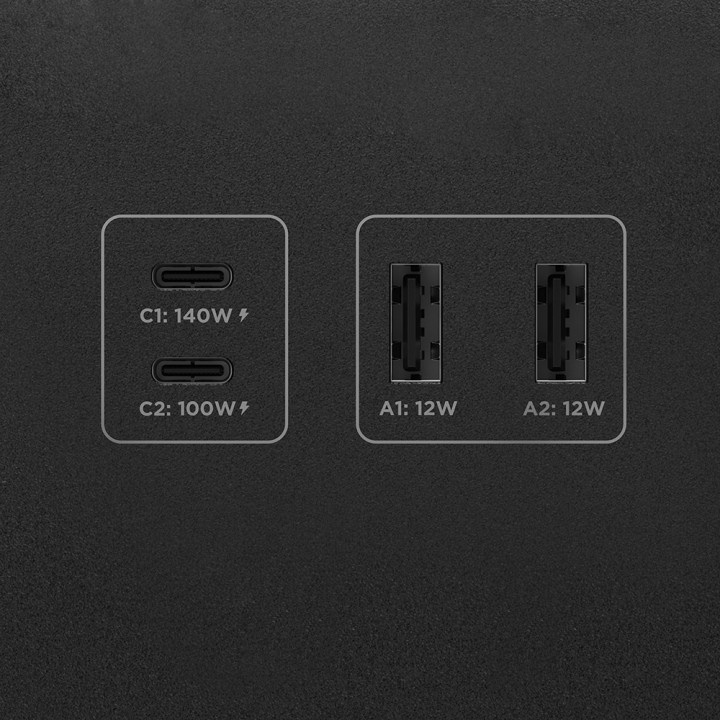 - 1 kabel in de 140 W + 1 kabel in de 100 W-poort: 80% in 57 minuten